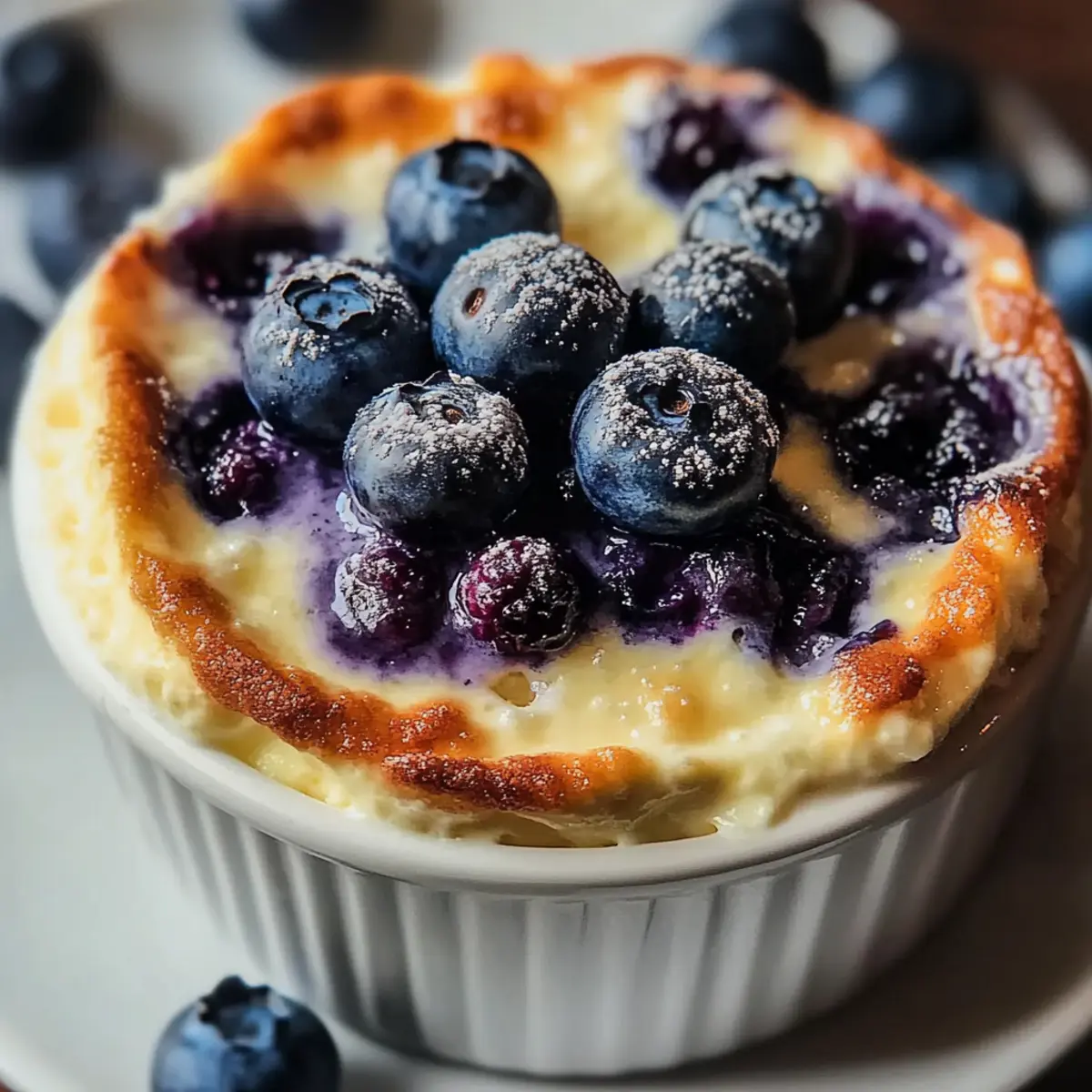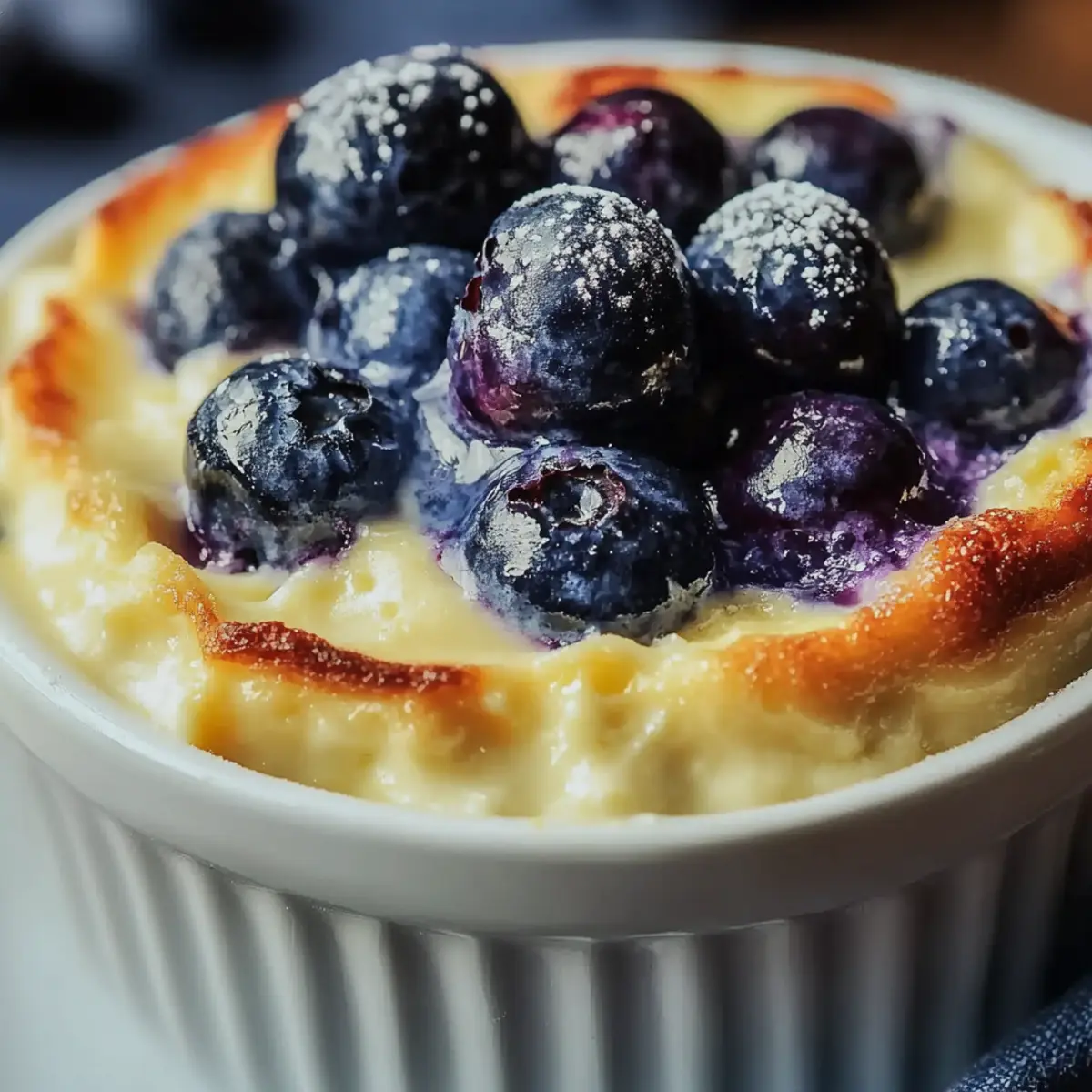 - Pour the mixture into a ramekin or small baking dish, scattering a few extra blueberries on top.