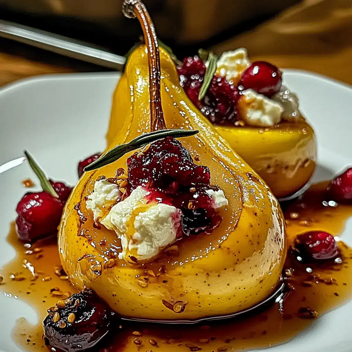 Cozy Baked Pears with Goat Cheese, Honey, and Cranberries Delight