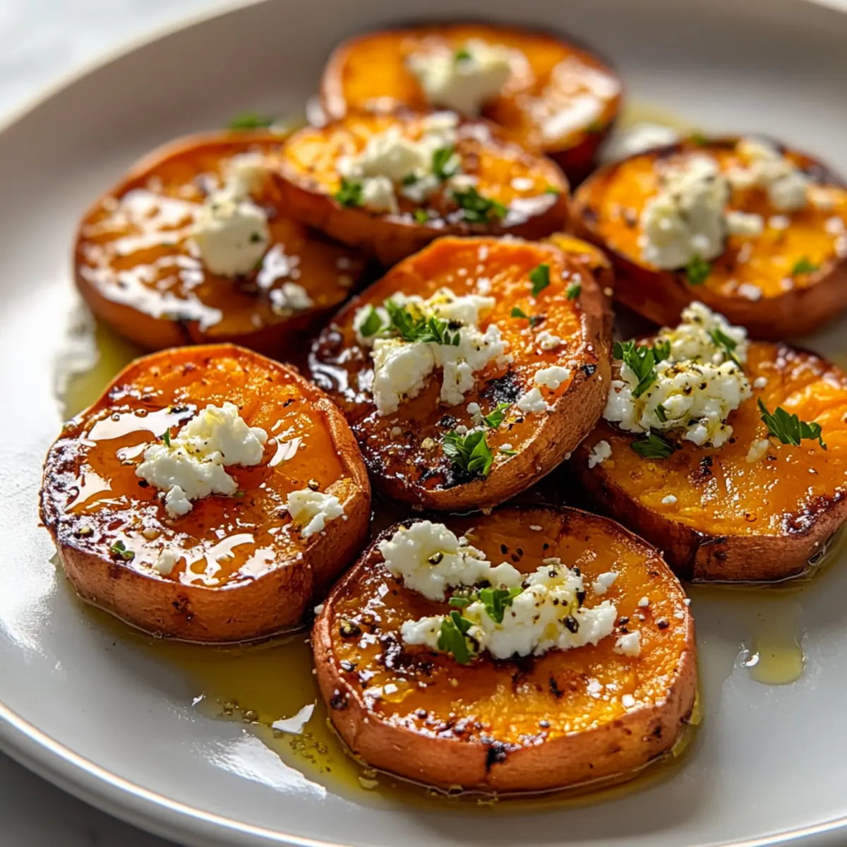 Sweet and Savory Roasted Sweet Potato Rounds with Honey & Feta