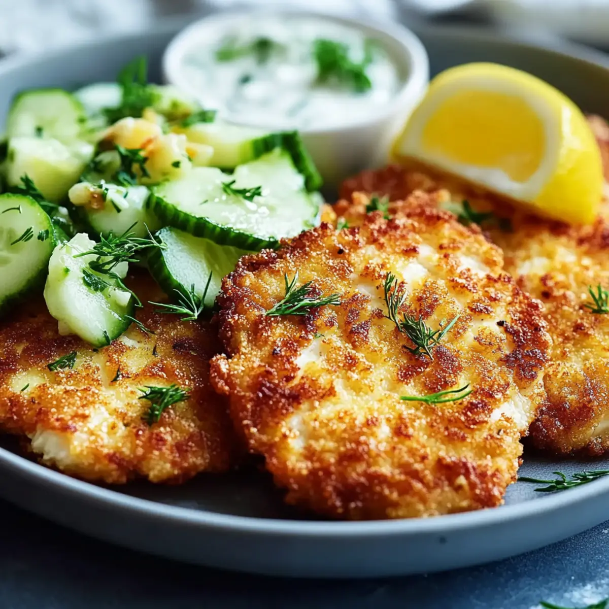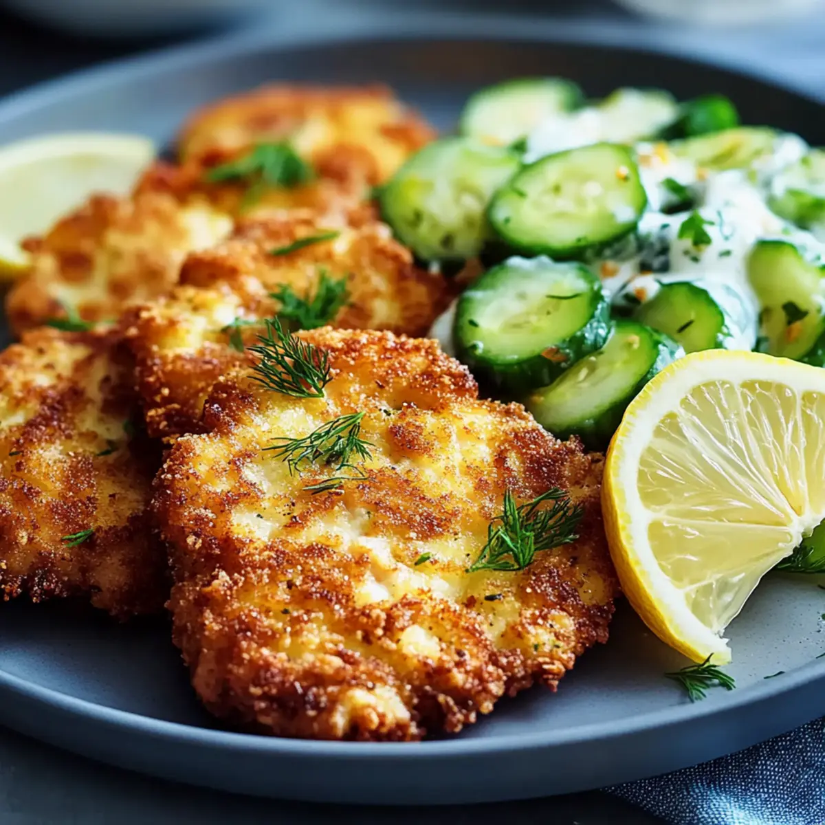 The sound of sizzling chicken hitting hot oil fills the kitchen as I prepare to share one of my all-time favorite meals: Chicken Schnitzel With Cucumber Salad. This dish offers an irresistible combo of crispy, golden chicken paired with a revitalizing salad, transforming any meal into a comforting experience. Not only is it low-calorie, making it a guiltless indulgence, but it’s also a breeze to whip up—perfect for busy weeknights or casual gatherings. The creamy yogurt-dressed cucumbers bring a refreshing twist that beautifully balances the hearty schnitzel. If you’re tired of the same old takeout and crave something homemade that feels special, you’re in for a treat. Ready to dive into the delightful flavors of this classic European dish? Let’s get cooking!