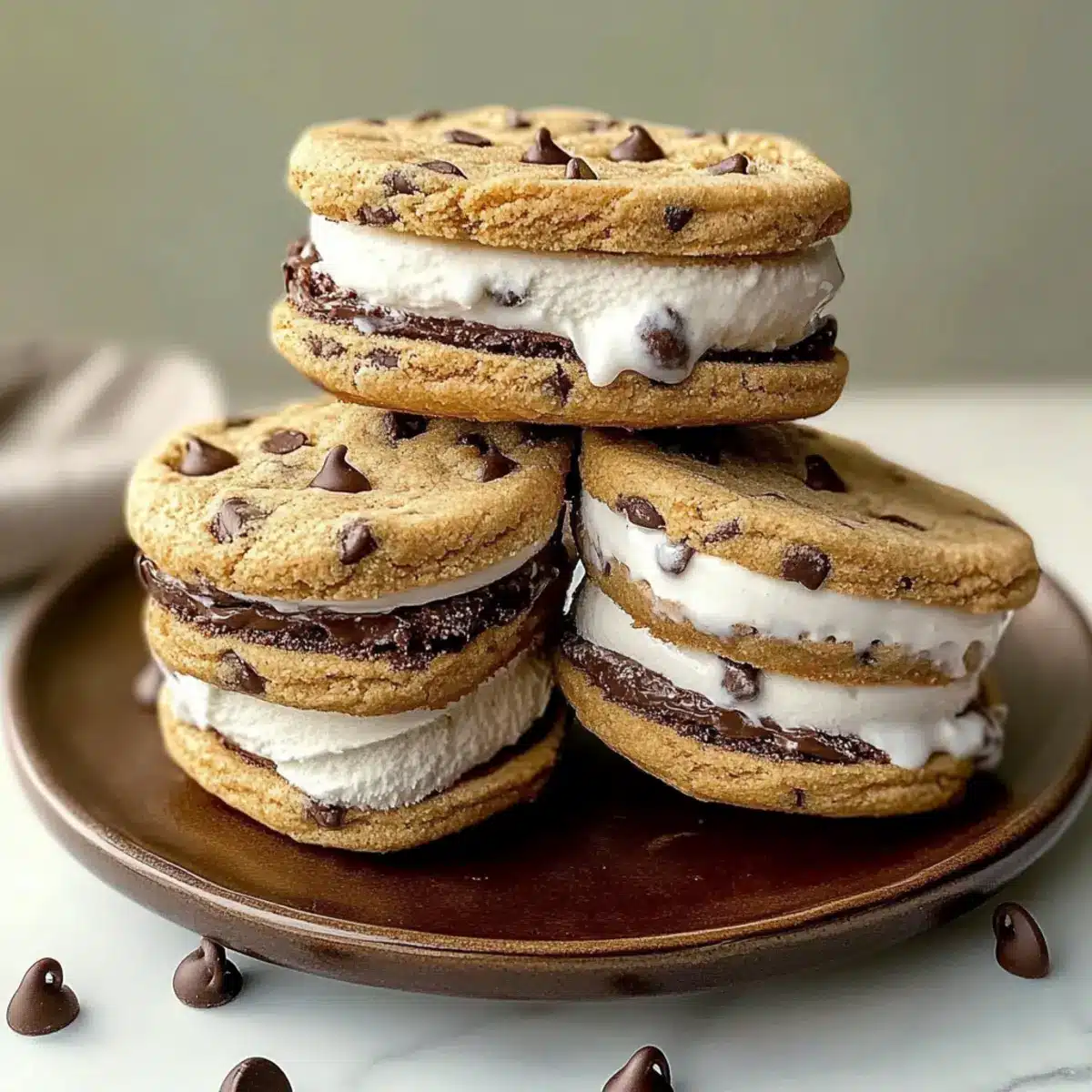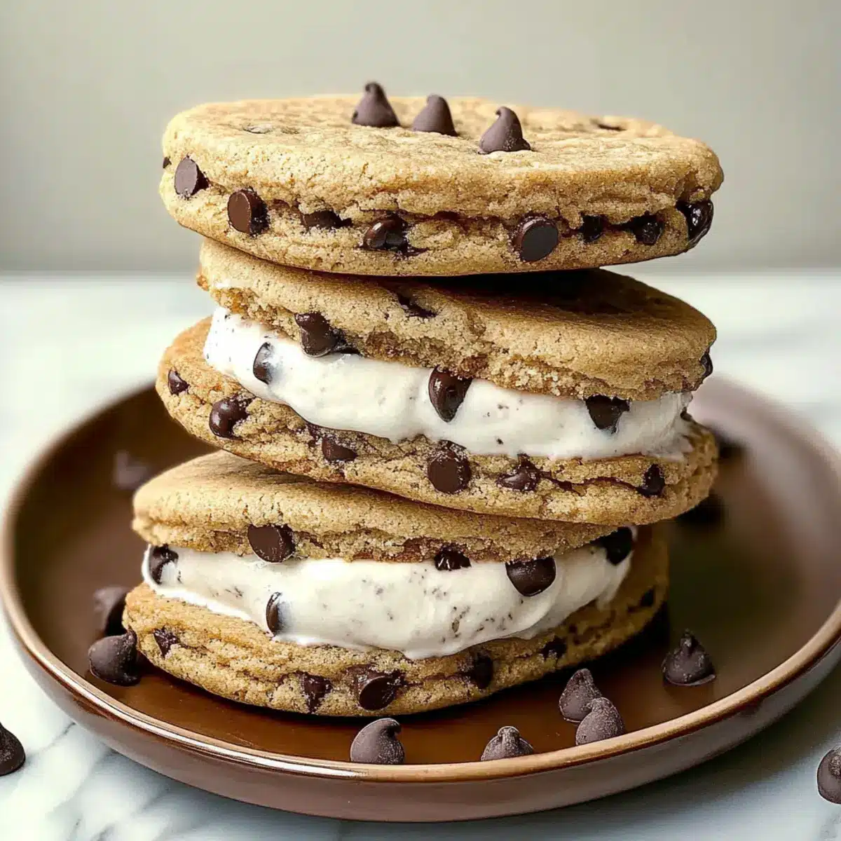 Gently fold in 1 cup of semi-sweet chocolate chips and 1 cup of dark chocolate chunks into the cookie dough. The melted chocolate will bring richness to your Cookie Ice Cream Sandwiches, creating that delightful contrast between chewy cookies and creamy ice cream.