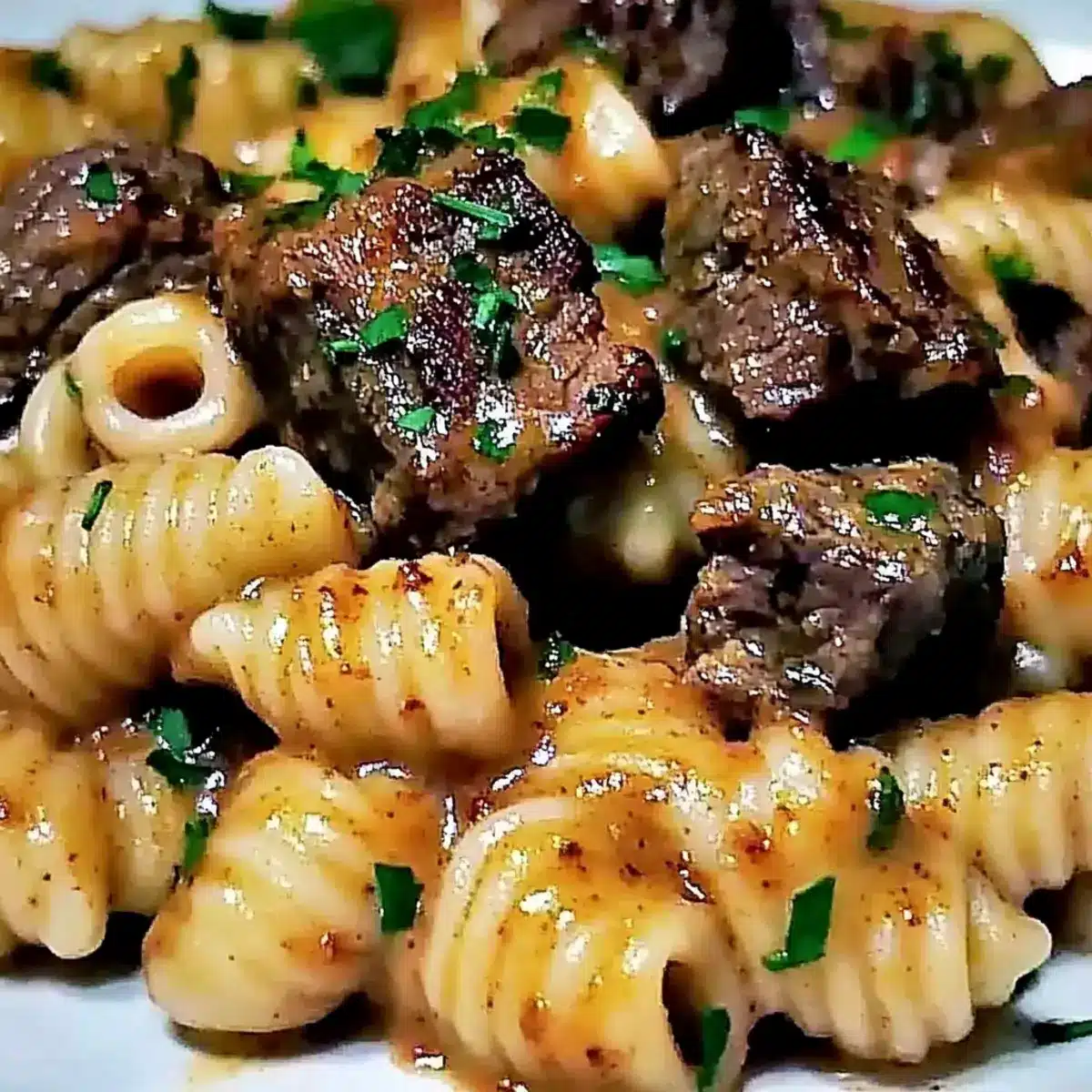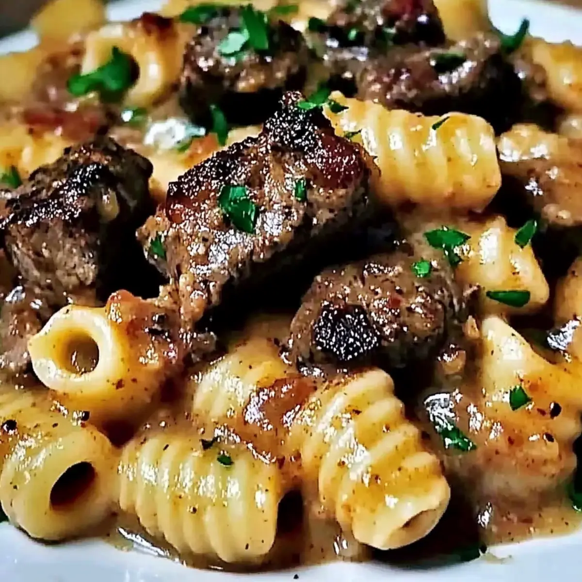 Yes, you can! To freeze, portion the dish into a freezer-safe container, ideally separating the steak and pasta to preserve their textures. It will keep well for up to 3 months. When you’re ready to enjoy, thaw it in the fridge overnight before reheating.