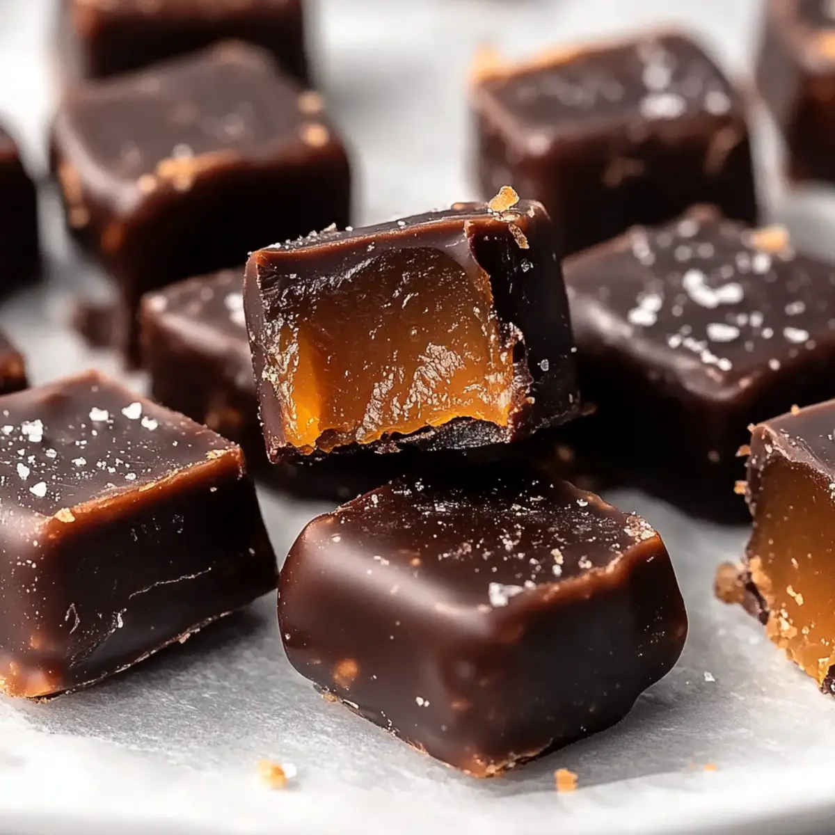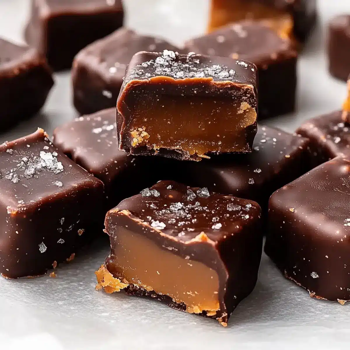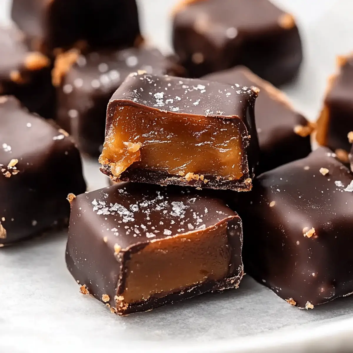 - Dip the Caramels: Dip each square in chocolate, allowing excess to drip off. Place on a cooling rack.