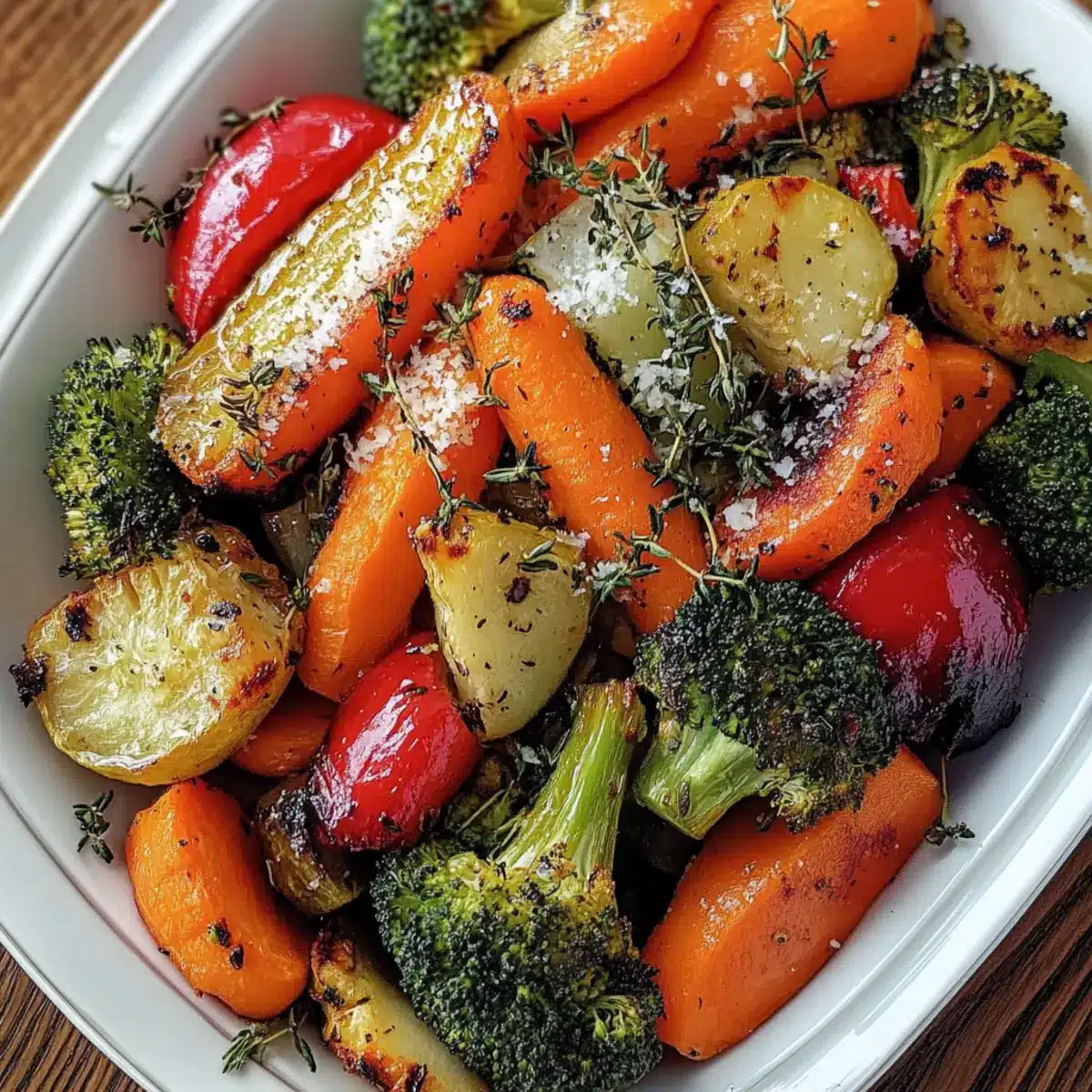 As I stepped into the kitchen, the rich scent of garlic began to swirl around me, mingling with the earthy aroma of roasting vegetables. This Garlic Roasted Vegetables with Parmesan recipe is one of those easy dishes that makes my heart sing. Packed with vibrant colors and flavors, it takes just 40 minutes to transform simple ingredients into a delightful side dish or even a light main course. The best part? This healthy side is not only vegetarian and gluten-free but also evokes nostalgia with its warmth and comfort—perfect for gathering around the table. Plus, the addition of Parmesan truly elevates the dish, making it an irresistible favorite. Ready to bring some joy to your plate? Let’s dive into this roasted veggie revelry!