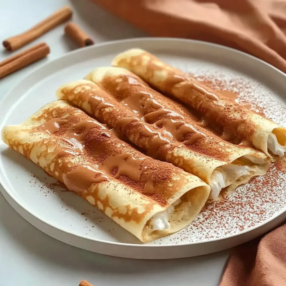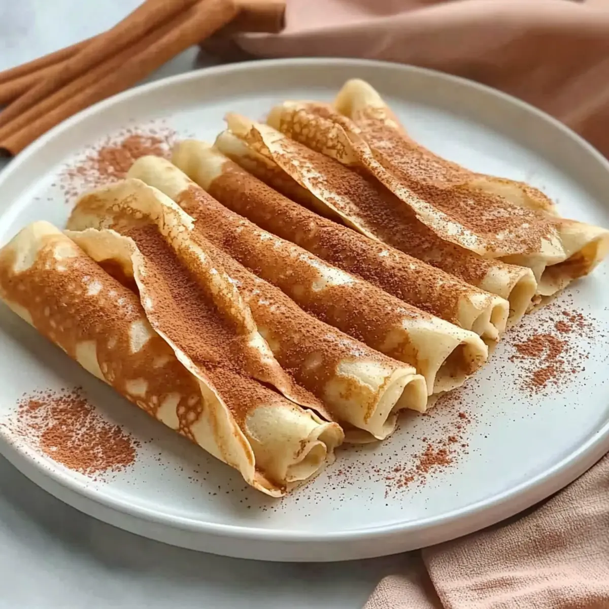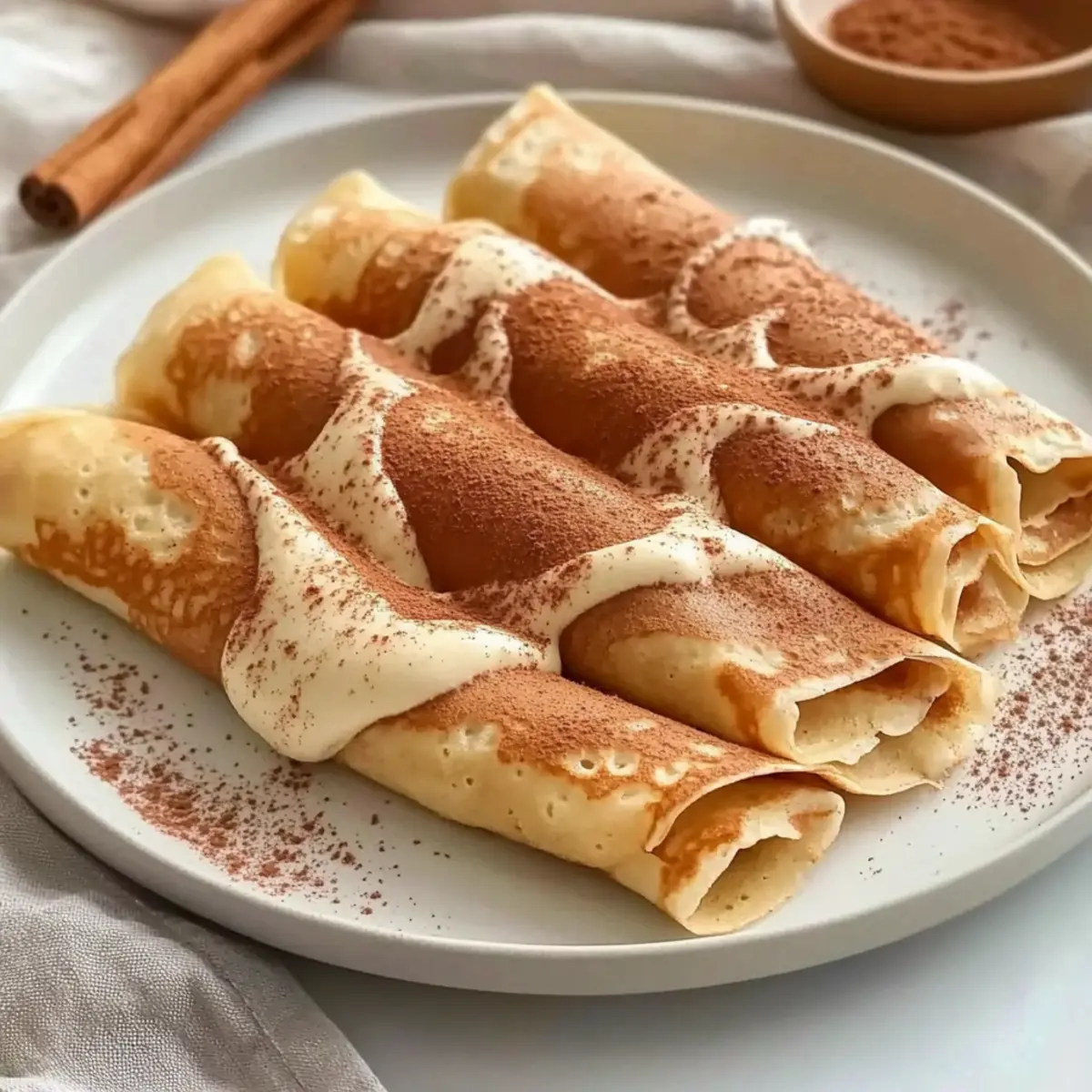 - Sprinkle the prepared cinnamon topping over the rolled crepes before serving.