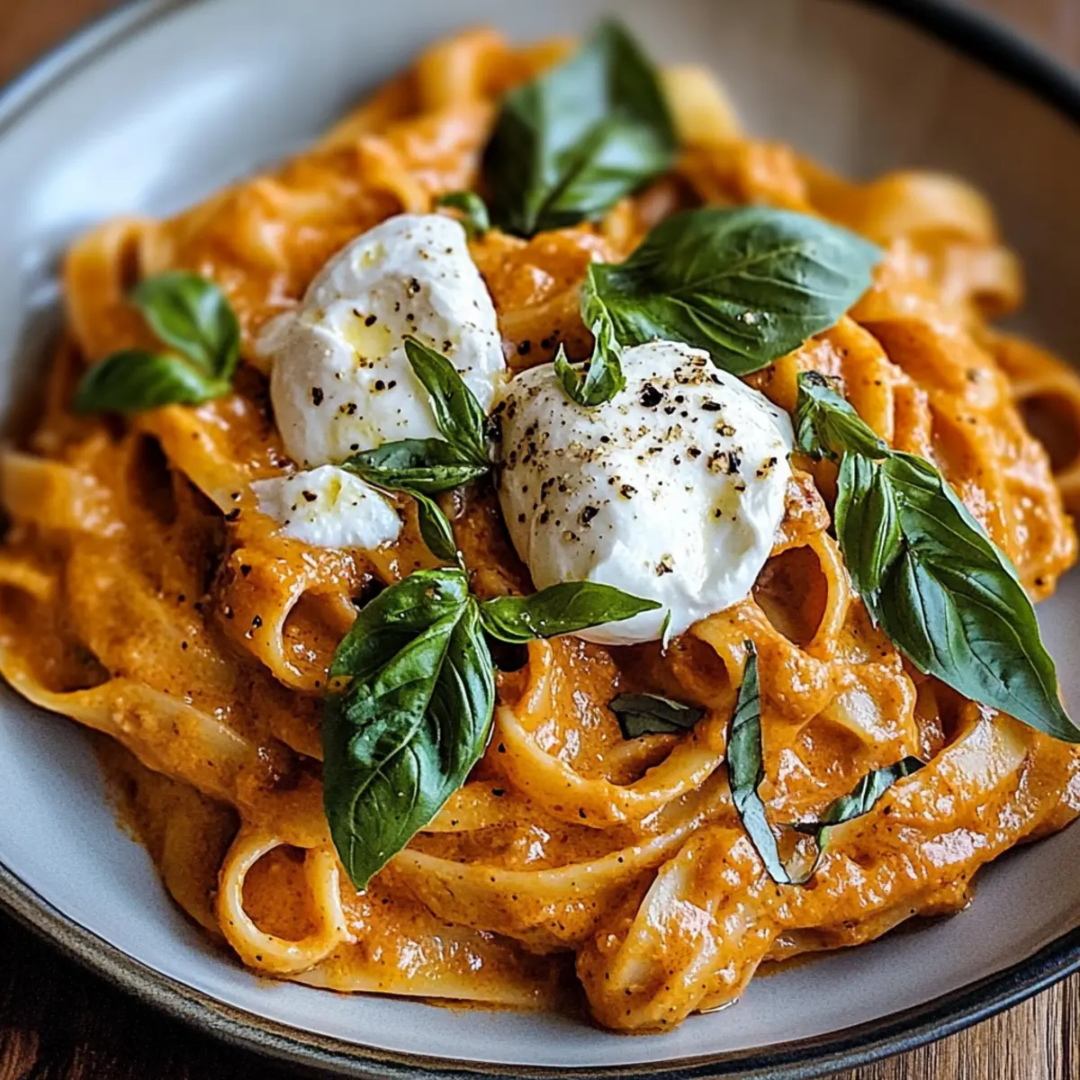 Creamy Red Pepper Pasta with Burrata & Fresh Herbs Delight