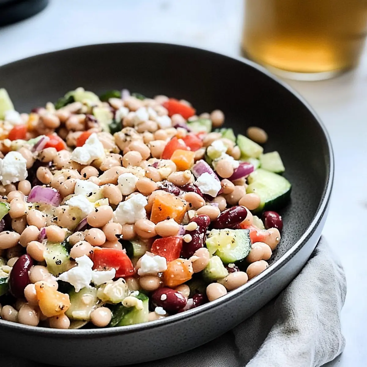 At the bustling farmers’ market, I caught a glimpse of vibrant beans and crisp vegetables, their colors practically singing for attention. That moment inspired me to whip up this High-Protein Dense Bean Salad with Honey Dijon Vinaigrette—a perfect blend of nutritious ingredients that won’t just elevate your mealtime game but also tantalize your taste buds. This salad recipe combines hearty chickpeas and creamy cannellini beans with the delightful crunch of fresh veggies and the zesty sweetness of pomegranate seeds, all topped with rich goat cheese. Thankfully, it comes together in just 10 minutes, making it an ideal choice for those hectic days when we want something satisfying but simple. Plus, it’s not just a crowd-pleaser at gatherings—it’s also meal prep-friendly and keeps fresh for days! Ready to discover how to make this colorful dish come to life? Let’s dive in!
