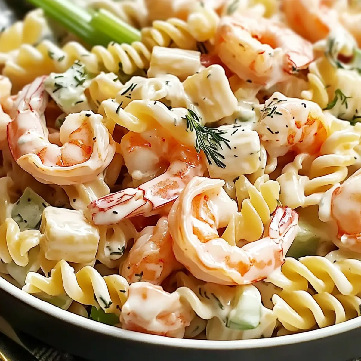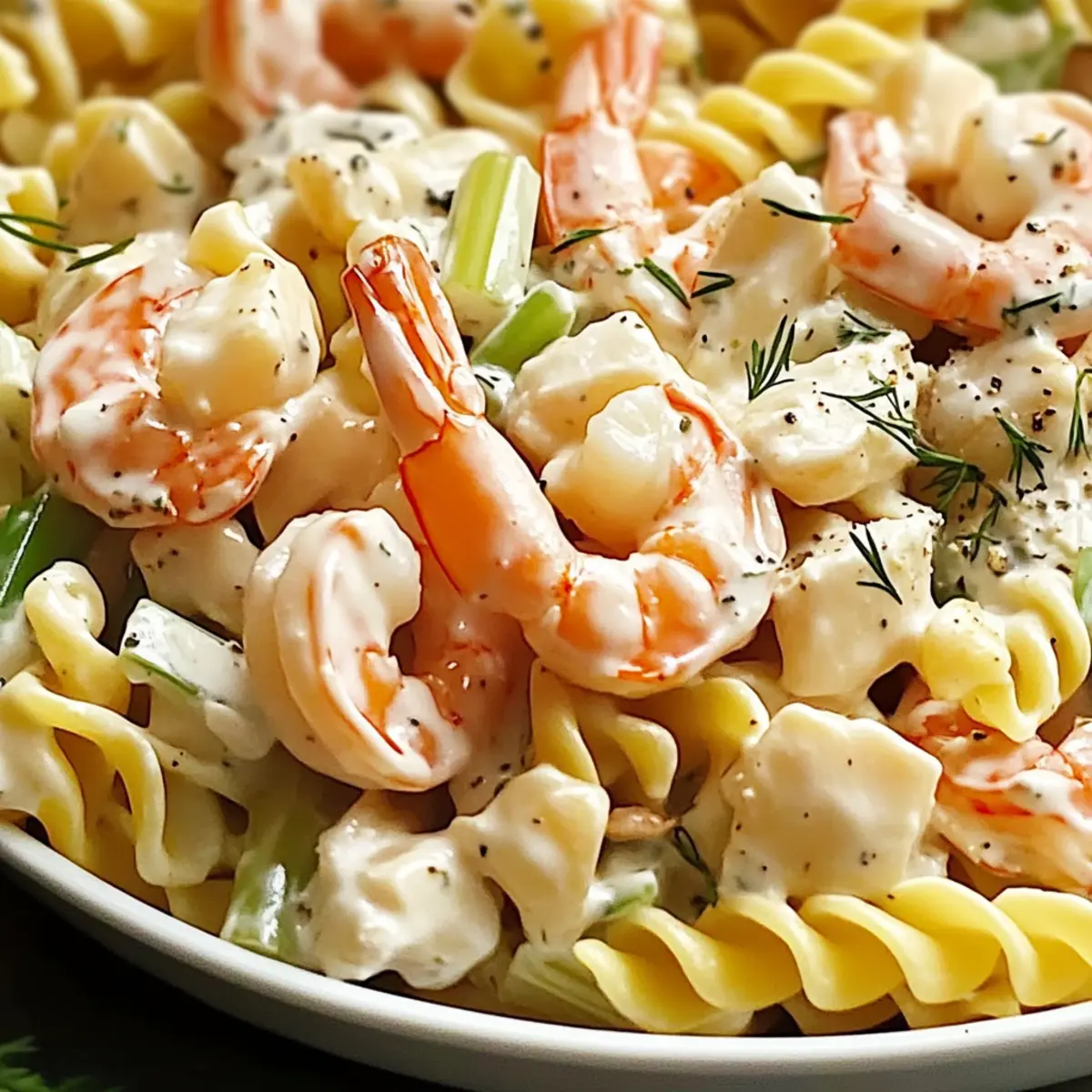 The Creamy Seafood Pasta Salad is an excellent choice for meal prep, saving you valuable time on busy weeknights. You can prepare the pasta and chop all the vegetables up to 24 hours in advance; simply store them in separate airtight containers in the refrigerator to maintain their freshness. For best results, cook the shrimp and combine all ingredients just before serving, which will help preserve the quality of the seafood. Remember to keep the dressing separate until you’re ready to toss everything together, ensuring the salad remains creamy and delightful. This way, you’ll sit down to a luxurious dish that tastes just as delicious as when freshly made!