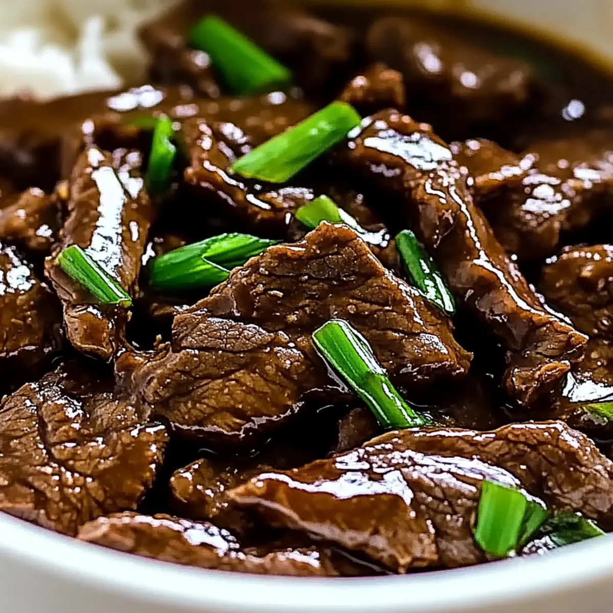 Once the sauce has thickened, gently scoop the Mongolian beef onto plates or bowls. Drizzle the thickened sauce generously over the meat, and for a delightful garnish, sprinkle with sliced green onions. This final touch not only adds a pop of color but also a fresh crunch to your delicious dish!