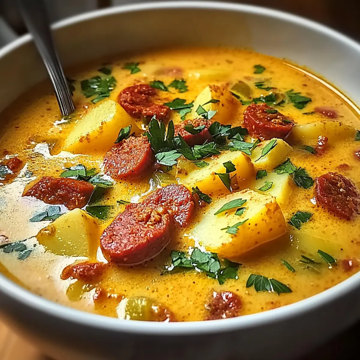 Comforting, this soup envelops you in warmth, making it perfect for chilly evenings. Flavorful ingredients like smoky chorizo and creamy Yukon Gold potatoes create a dish that feels indulgent yet wholesome. Quick to prepare, it’s an easy one-pot meal that saves you time in the kitchen. Versatile, you can easily swap in different sausages or veggies based on your preferences. For a delightful pairing, try it with some crusty bread or a fresh Spanish salad. Don’t miss out on this comforting recipe that’s sure to become a family favorite!