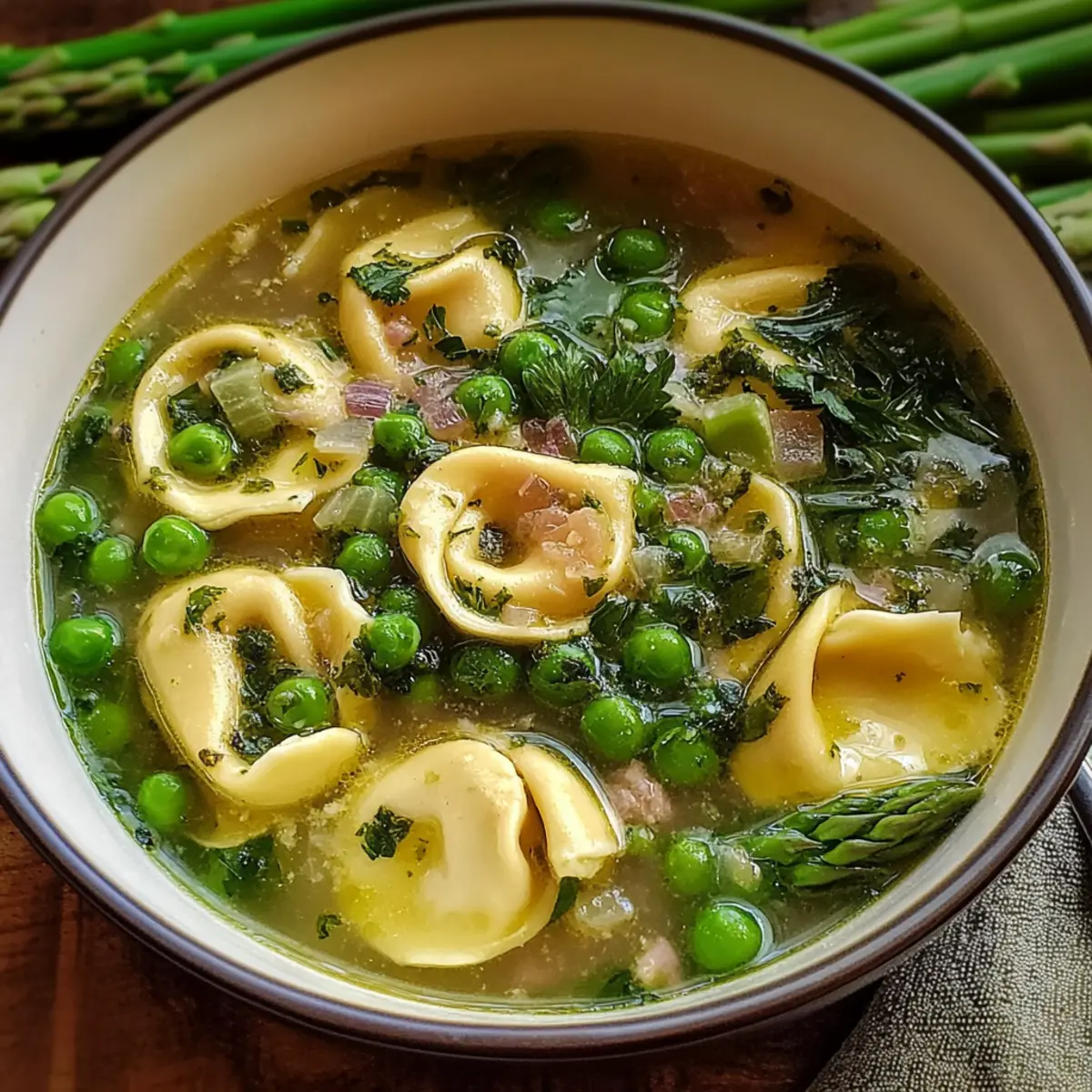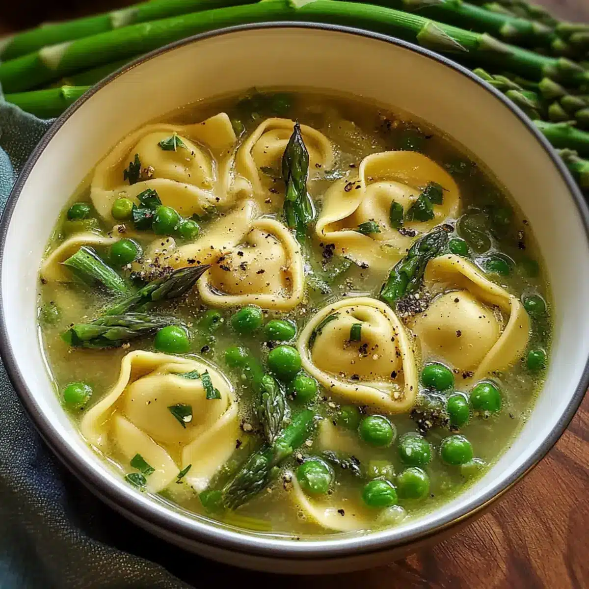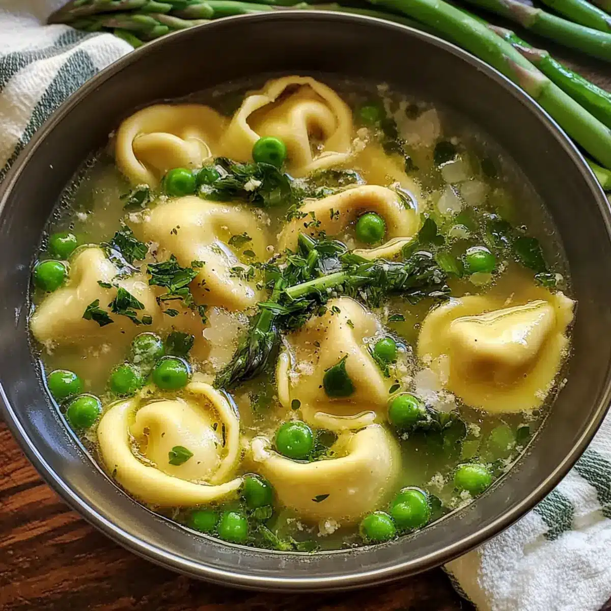 Delicious Spring Tortellini Soup with Peas and Asparagus Joy