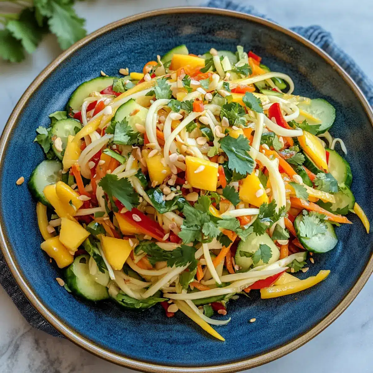 Freshness Galore: This Vietnamese Mango Salad bursts with vibrant, ripe mangoes and crunchy veggies, making every bite a refreshing sensation.