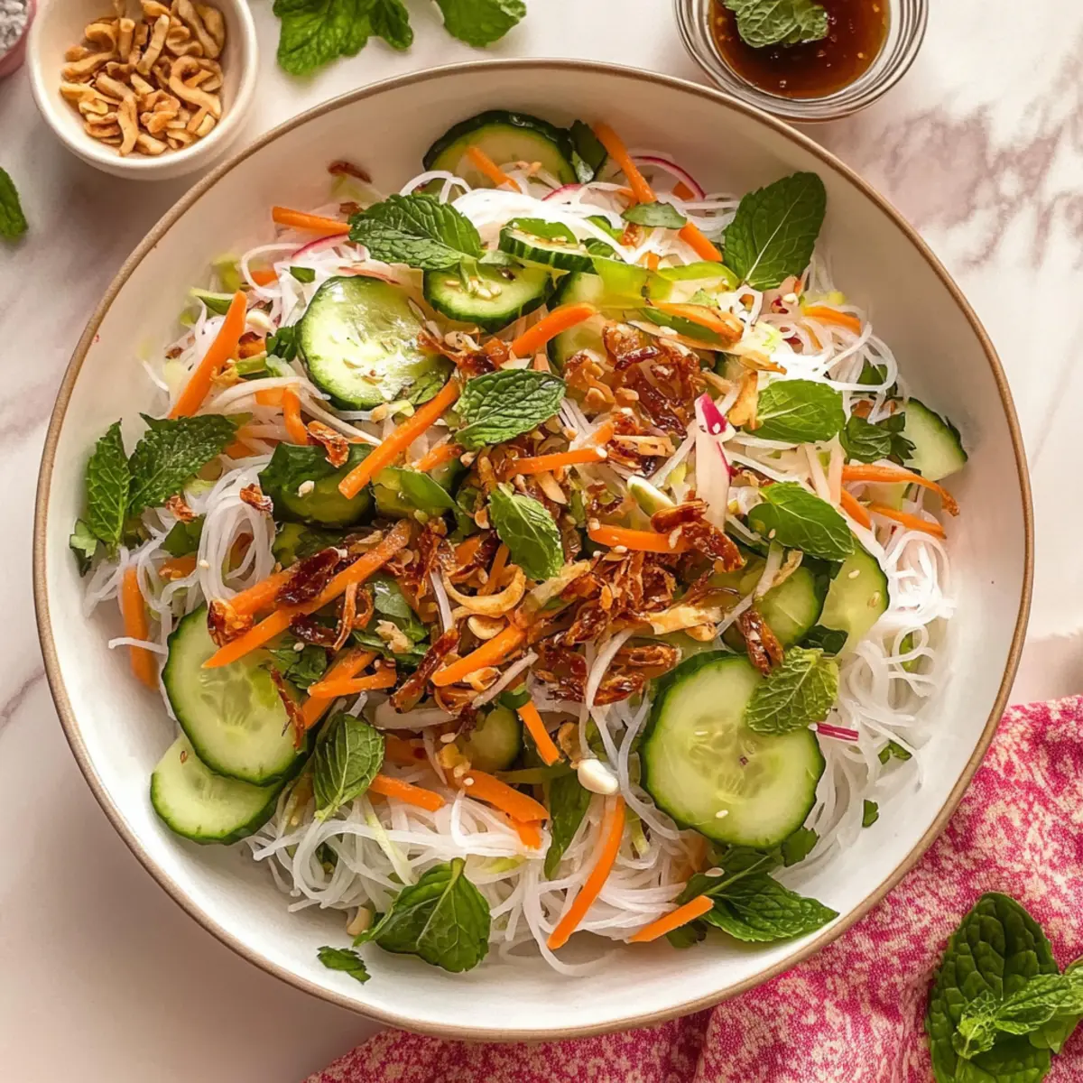 With these variations, your Vietnamese noodle salad can be as unique as your taste buds desire. Need more delicious ideas to complement your meal? Try pairing it with a refreshing Apple Feta Salad or our delightful Thanksgiving Salad Cranberry for an even more vibrant feast!