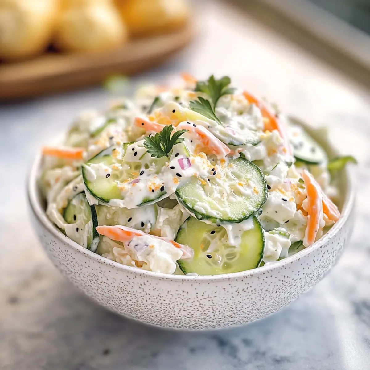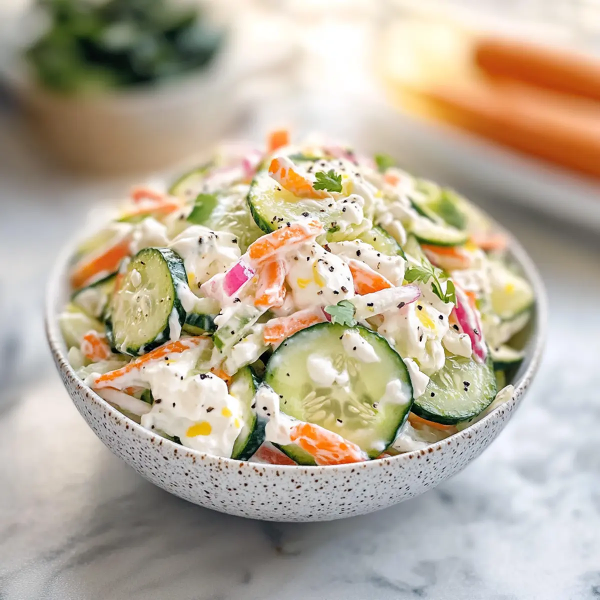 Spicy Twist: Add thinly sliced jalapeños for a fiery kick, turning your salad into an exciting spicy experience. The heat beautifully complements the creamy dressing and refreshing cucumbers.